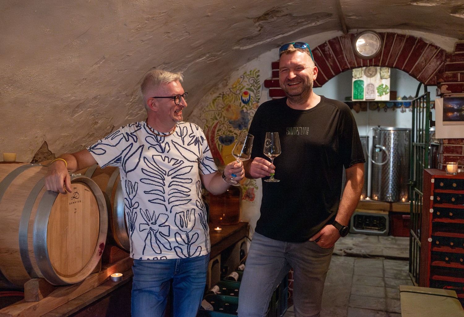 Otevíráme naše zahrady a sklepy a naléváme víno rovnou tam, kde ho tvoříme. Jsme malá skupina sedmi mikrovinařů a máme rádi klidná odpoledne s vínem. Baví nás, když se u nás lidé zastaví, sednou si pod pergolu nebo na deku a společně se bavíme o tom, co zrovna voní ve skleničce. Zveme rovnou k nám domů na komorní ochutnávání. Plný piknikový koš, deka na trávu a dobrá společnost na procházku mezi sklepy k tomu patří úplně přirozeně.