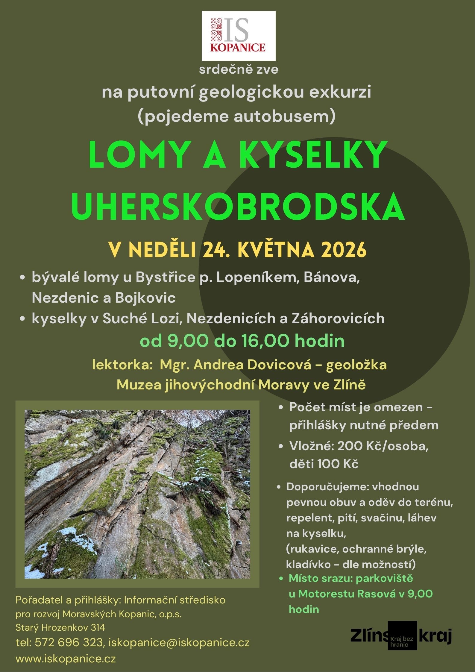 Putovní autobusová geologická exkurze s geoložkou Mgr. Andreou Dovicovou za lomy a kyselkami na Uherskobrodsku.