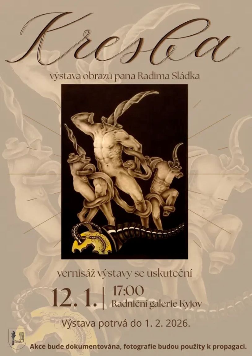 Radniční galerie Kyjov zve na vernisáž obrazů pana Radima Sládka. Autor Radim Sládek, který pochází ze Svatobořic-Mistřína, nám představí své obrazy, na kterých detailně vystihuje lidské tělo, či portréty dle své vlastní fantazie. Výstava potrvá do 1. 2. (NE).