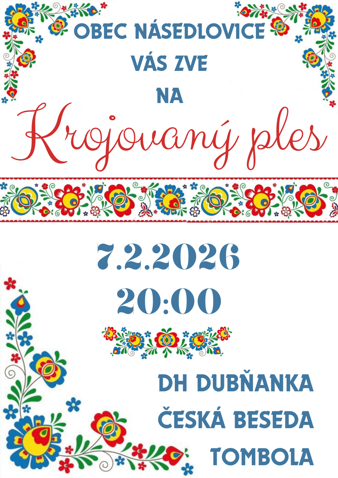 Obec Násedlovice vás srdečně zve do KD na krojovaný ples.