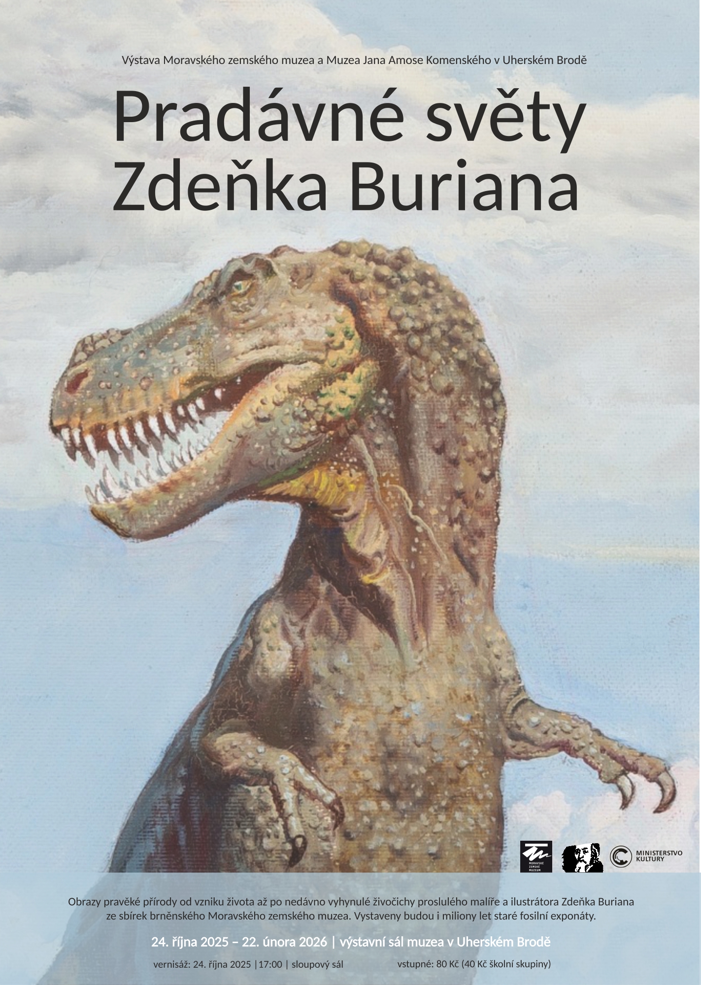 Výstava 44 originálních obrazů celosvětově uznávaného průkopníka paleoartu Zdeňka Buriana ze sbírek Moravského zemského muzea. Vystaveny budou obrazy s Burianovou nejslavnější pravěkou tématikou, které tvořil od 40. do 70. let minulého století pod taktovkou předních českých paleontologů, jako byli prof. Josef Augusta, prof. Zdeněk Špinar a dr. Vratislav Mazák. Výstava představí ikonická i méně známá díla autora provázející napříč geologickými obdobími. Prostřednictvím olejových maleb a kvašů, které budou doprovázeny fosilními exponáty, se návštěvník přenese desítky až stovky milionů let zpět od prvohorních trilobitů či stromovitých plavuní a přesliček, přes druhohorní dinosaury, ptakoještěry a ryboještěry až po kenozoické mastodonty, nosorožce a sloní ptáky.