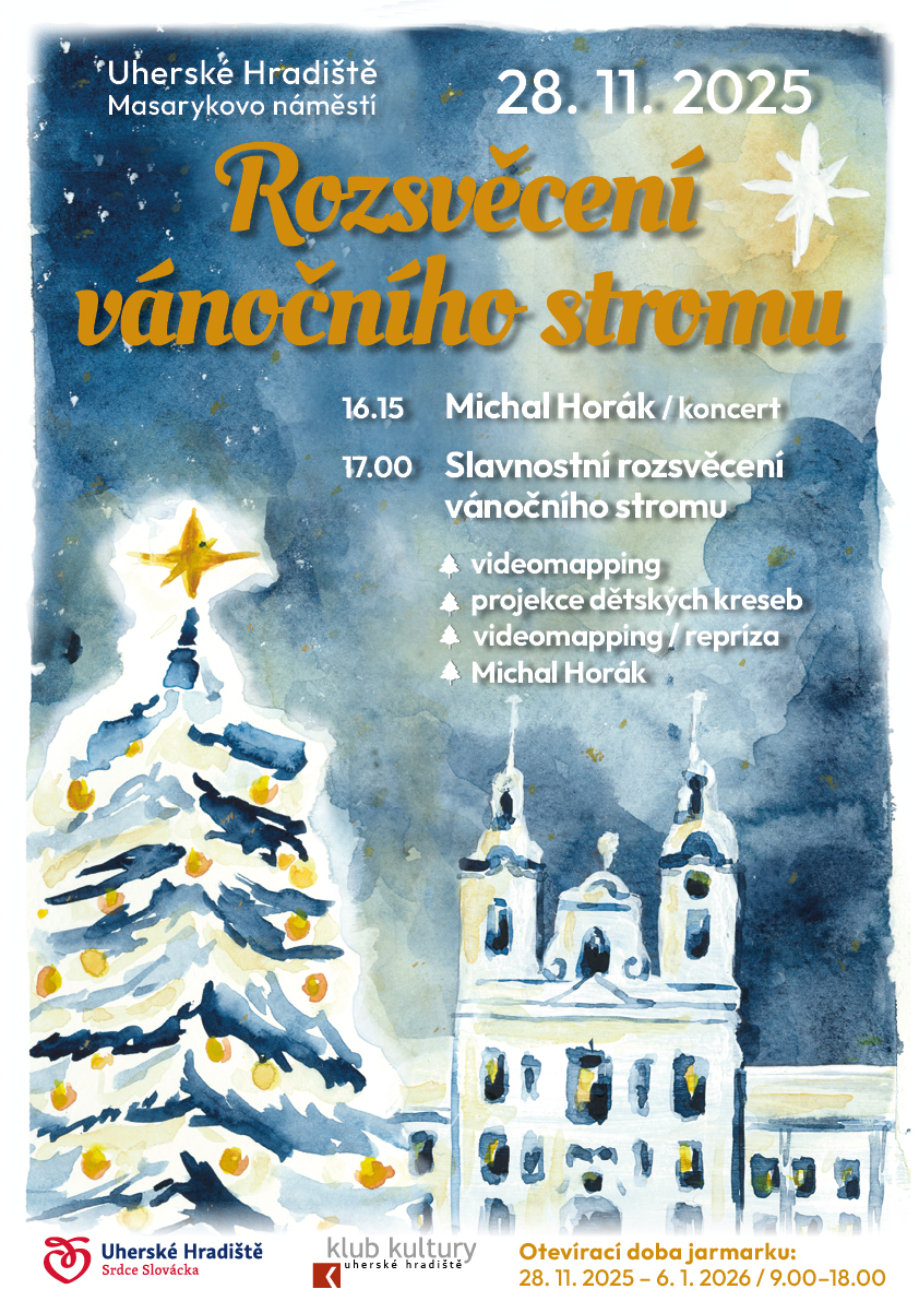 Slavnostní zahájení adventu v Uherském Hradišti oživené videomappingem a koncertem, jehož zlatým hřebem je rozsvěcení vánočního stromu na Masarykově náměstí.