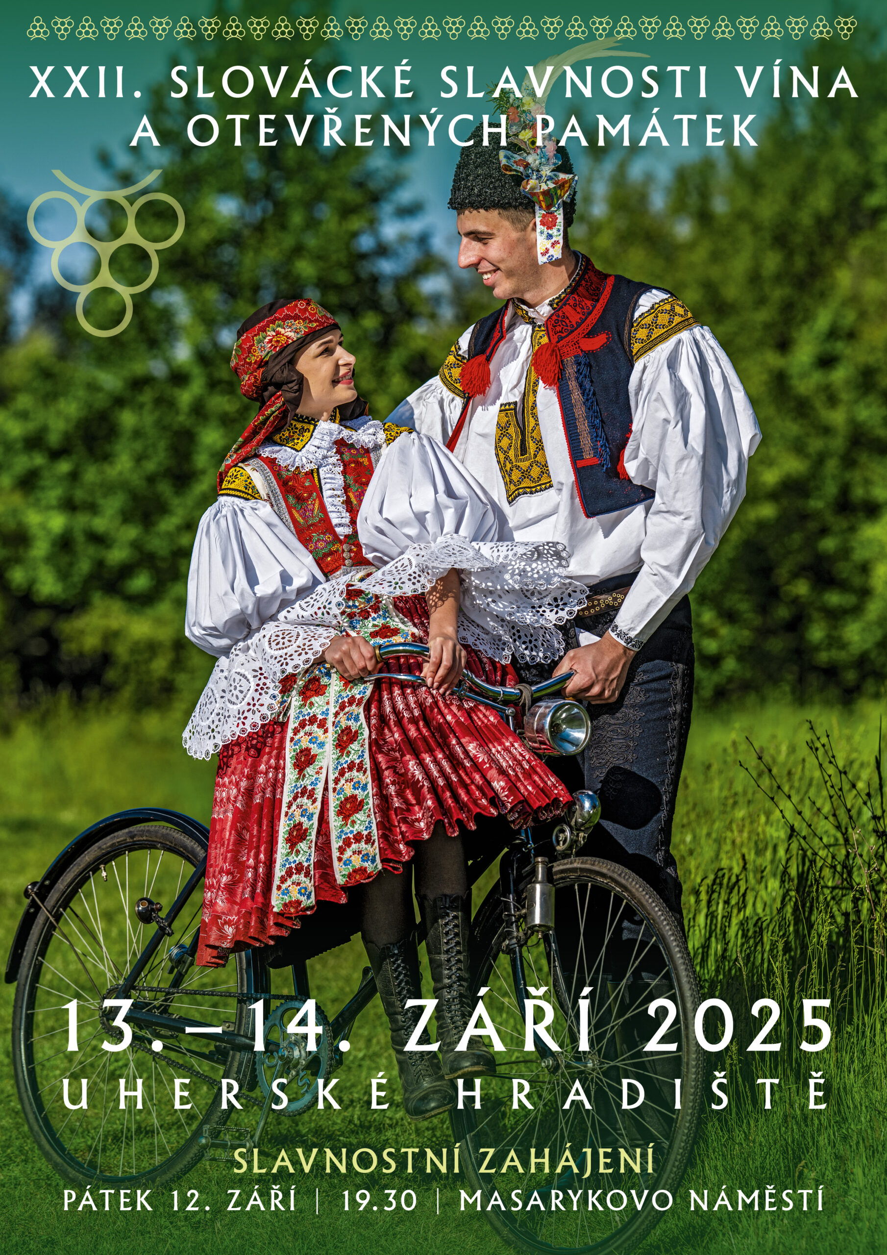 Srdečně vás zveme do srdce Slovácka – do Uherského Hradiště, kde se i letos rozezní tóny lidové hudby, ulice se zaplní kroji a rozvoní se víno z místních sklípků.