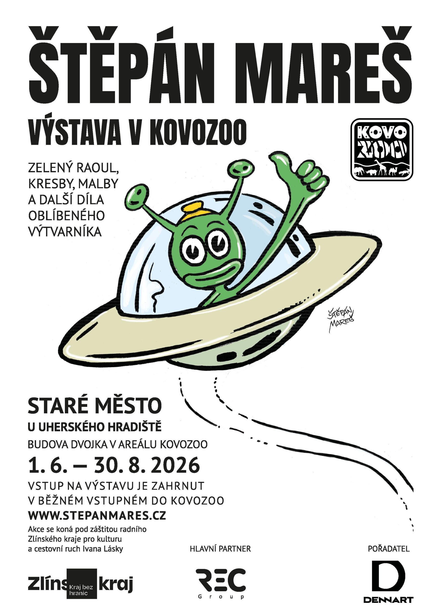 Od 1. června do 30. srpna 2026 se v areálu KOVOZOO ve Starém Městě u Uherského Hradiště koná výstava jednoho z nejoriginálnějších českých výtvarníků — Štěpána Mareše.