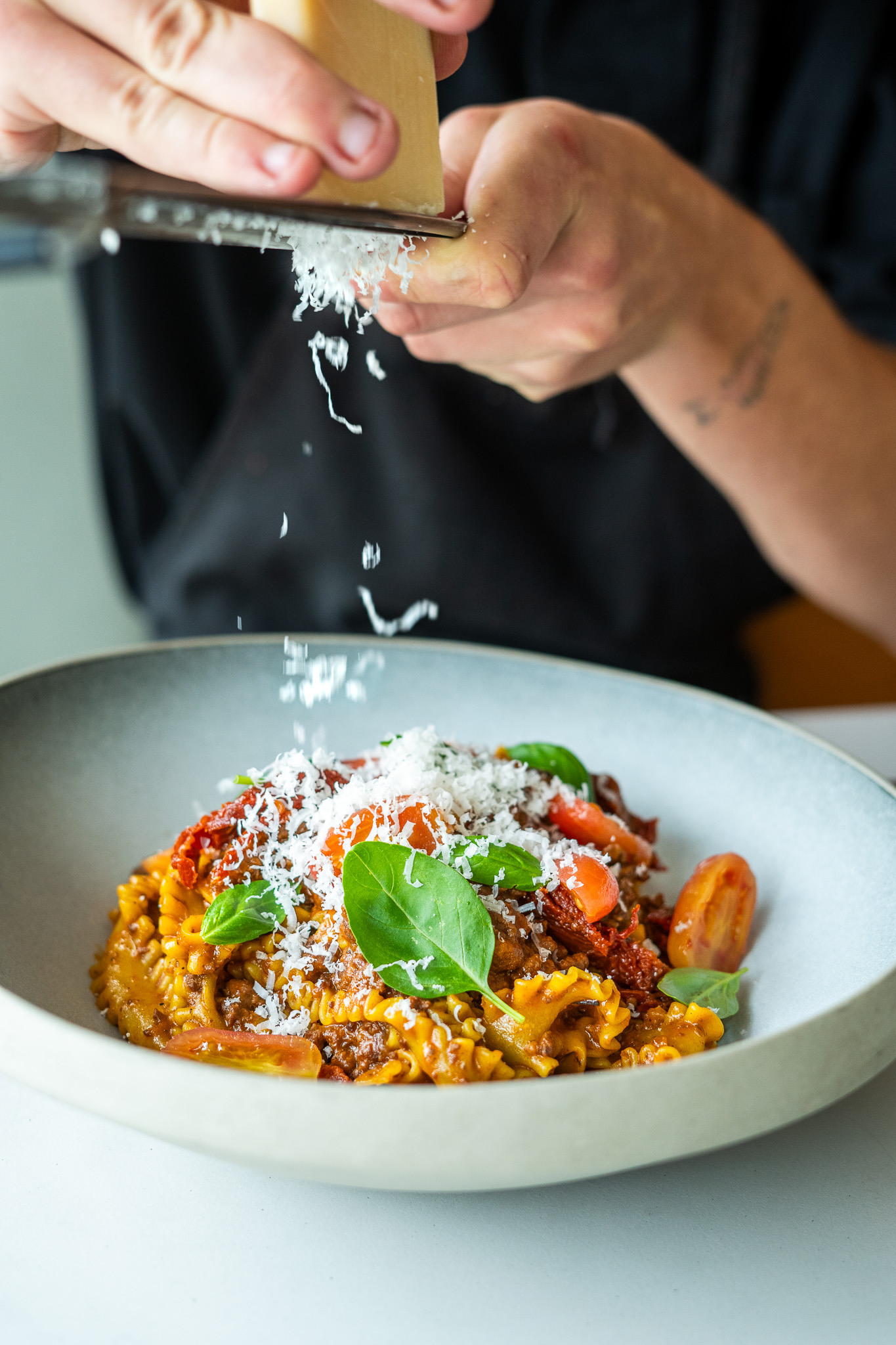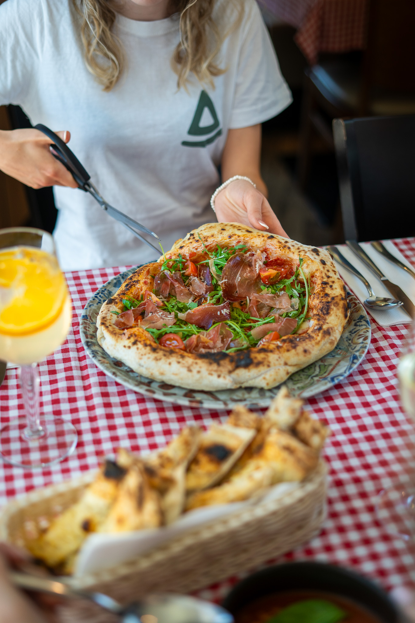 Perfektní pizza nevzniká jen díky skvělému těstu, které kyne minimálně 24 hodin, ale i díky ohni. V naší peci používáme vysušené dubové dřevo, které hoří rovnoměrně, dlouho a vytváří ideální žár kolem 450 °C. Právě díky němu pizza získává typické černé tečky (leopard spots), nadýchané cornicione a jemnou kouřovou chuť. Žádný plyn, žádná elektřina – jen pravá tradice pečení na dřevě.