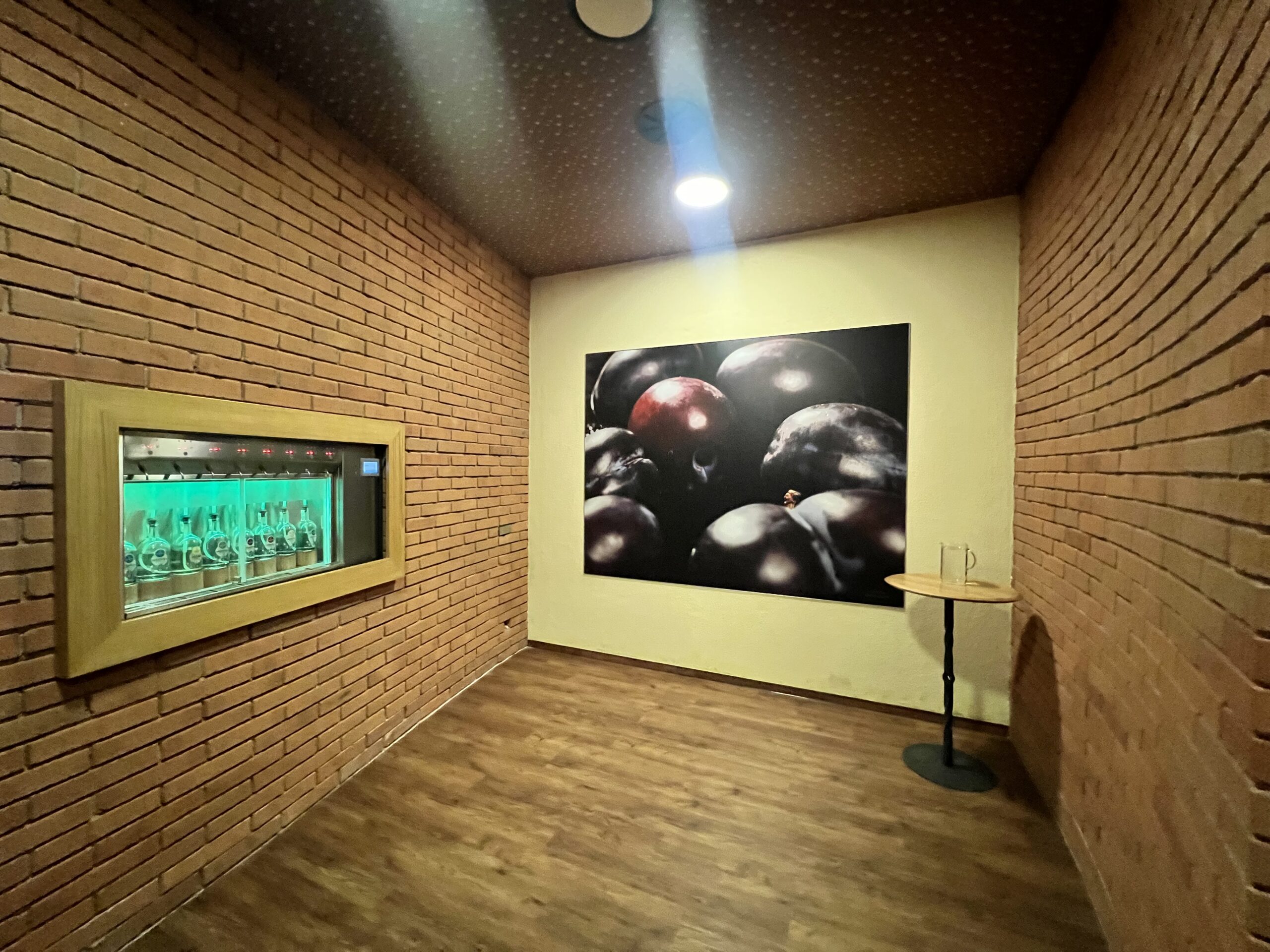 Ta nabízí k okoštování 176 druhů slivovic, pálenek a likérů. K nerušené degustaci v cihlovém sklepě slouží samoobslužné dávkovací automaty By the glass. Najdete zde soukromí pro ochutnávání těch nejlepších tradičních i netradičních destilátů, ginů, rumů, whisky a likérů z českých lihovarů. Stačí si jen vybrat a můžete nasávat atmosféru Slovácka plnými doušky