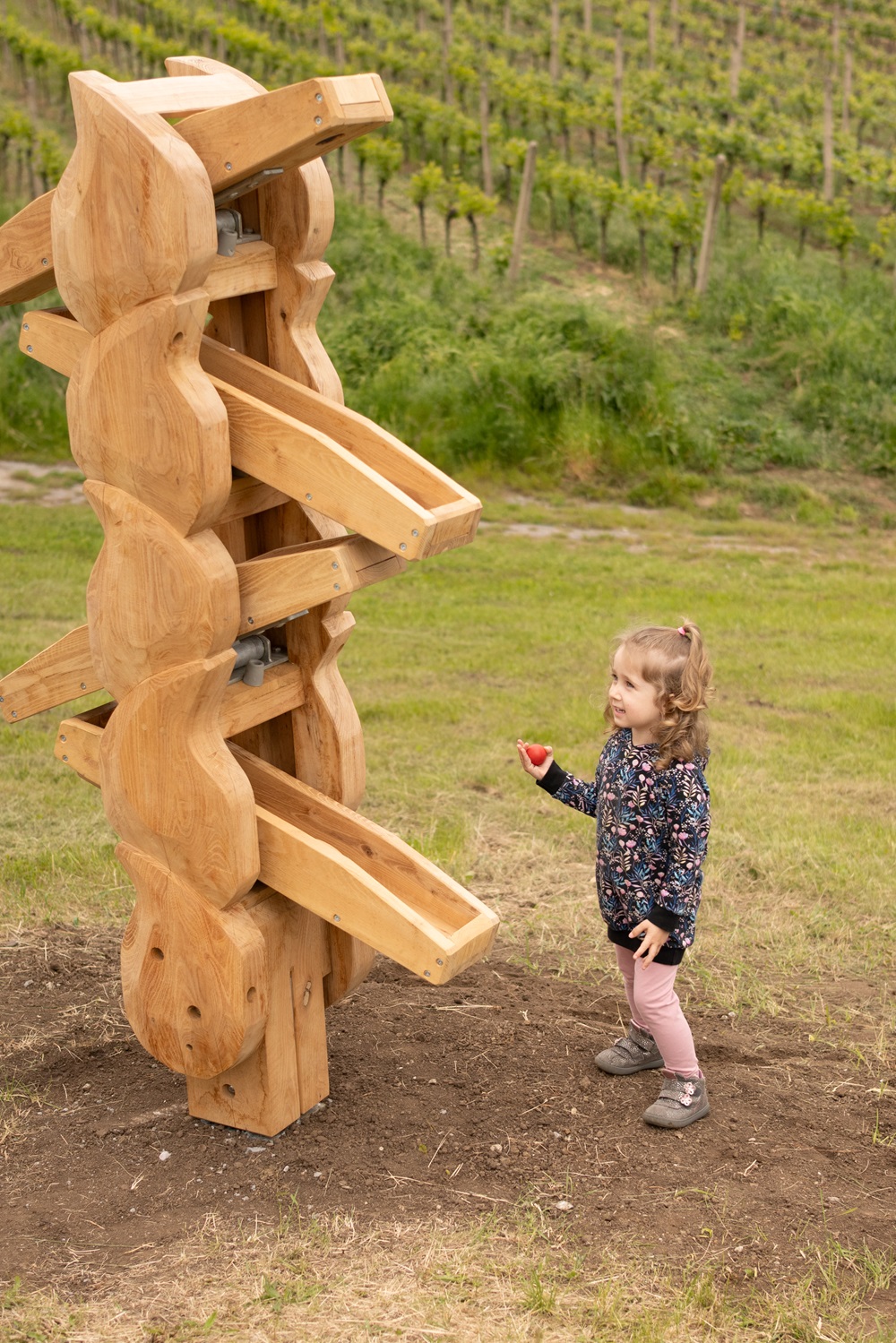 Průvodcem vám bude dřevěná kulička, kterou můžete cvrnkat, kutálet a koulet herními prvky tak, abyste hravou formou objevovali rozmanitou krajinu kolem Mutěnic. Kromě zábavy s kuličkou na stezce zažijete trochu adrenalinu na lanové dráze, zdatné děti si užijí lanové překážky na hřišti a na vaši návštěvu se těší stádo oveček.